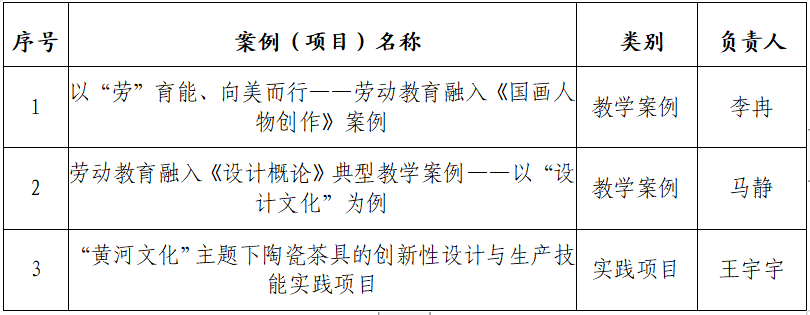 为推进劳动教育有机融入各类课程及人才培养全过程,展现劳动教育成果,总结推广典型经验和有效做法,实现优质劳动教育资源共享,学校积极组织劳动教育典型教学案例和实践项目的申报工作。一直以来,学校发挥劳动育人功能,弘扬劳动精神,教育引导学生尊重劳动、热爱劳动、崇尚劳动,树立劳动观念,培育劳动精神,培养劳动能力,全面落实德智体美劳“五育并举”,有效推动劳动教育与思政教育、专业教育、创新创业教育、志愿服务相结合,积极探索具有学校特色的劳动教育育人模式,稳步提升学生的劳动素养,注重教育实效,实现知行合一,促进大学生形成正确的世界观、人生观、价值观,促进学生全面发展。